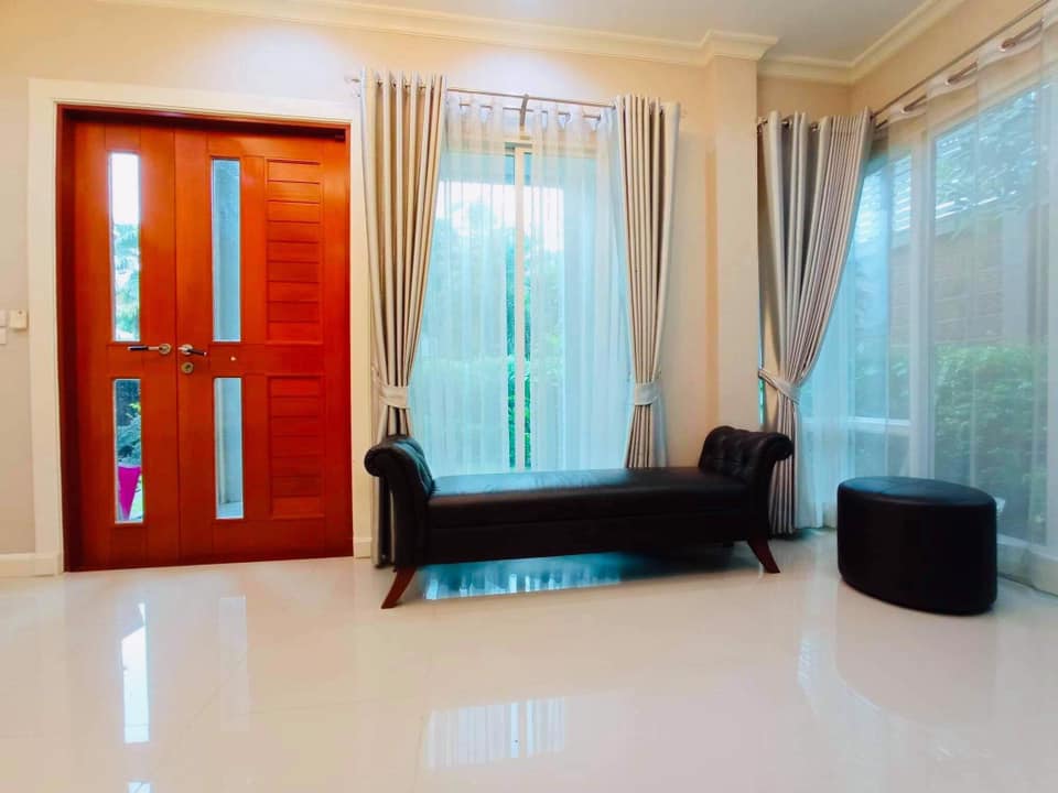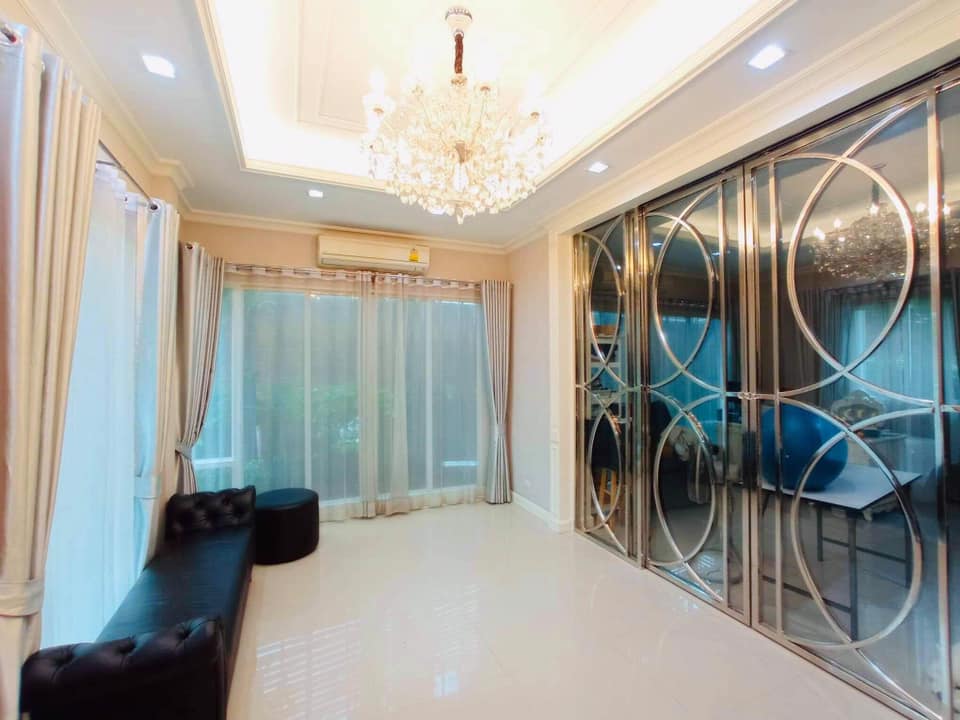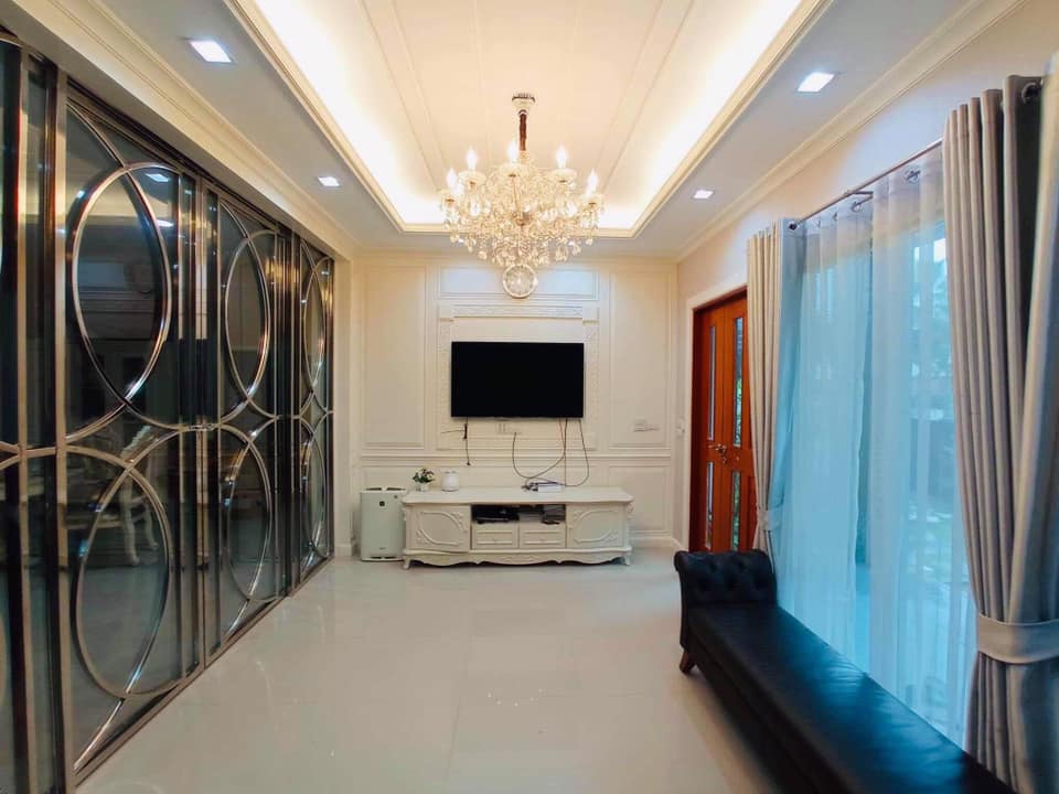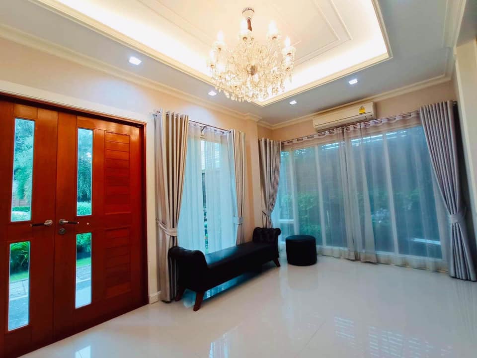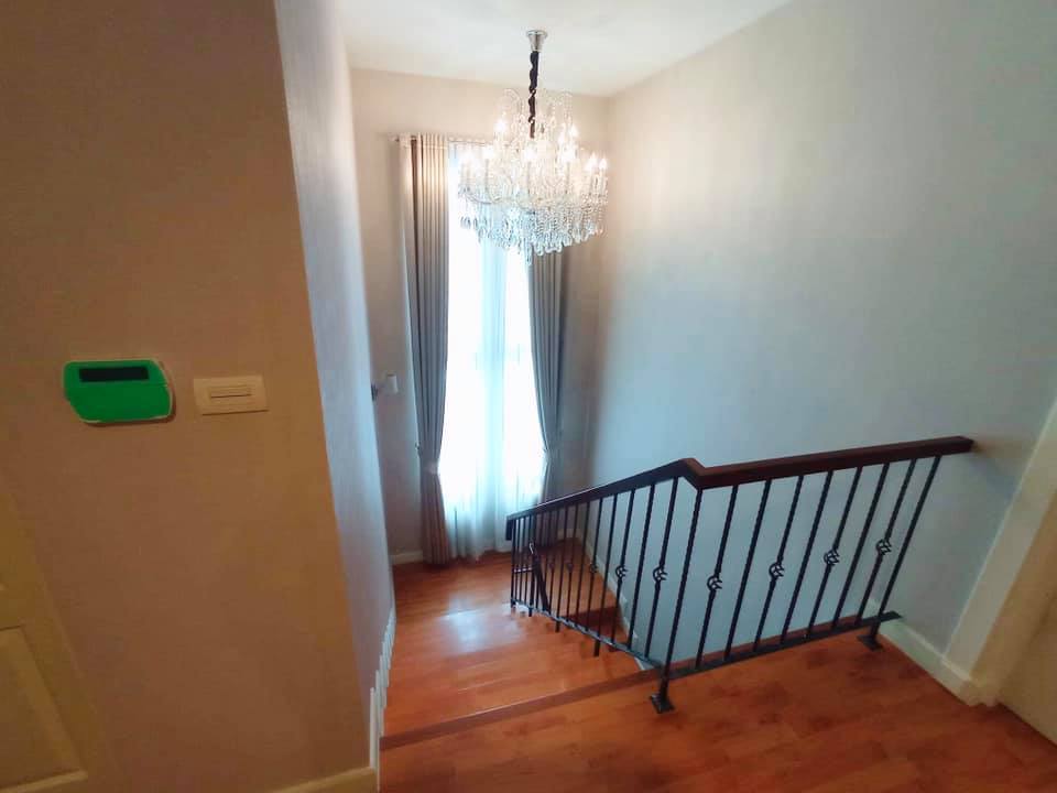 ตกแต่งบ้านหรูหราอย่างดี เฟอร์นิเจอร์บิ้วท์อิน และวอลล์เปเปอร์ทั้งหลัง ประดับโคมไฟแชนเดอเลีย โถงบันไดหรูหราสวยงาม ผ้าม่าน พร้อมเครื่องปรับอากาศ 7 เครื่อง